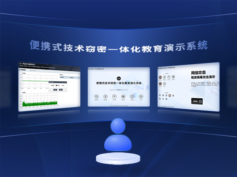 立鑫科技從2012年開始進行第一代保密教育演示平臺的研發(fā),通過長達幾年的升級和完善,形成的目前較為穩(wěn)定的“技術竊密一體化教育演示系統(tǒng)(高級版)”第三代產(chǎn)品。該平臺由“信息竊密技術演示系統(tǒng)”、“竊密過程視頻實時播放系統(tǒng)”以及“多媒體素材”三部份組成。教學過程中,由領導(專家)通過產(chǎn)品提供的多媒體(PPT、基本演示腳本)播講為牽引,結合產(chǎn)品提供多達27項的信息竊密攻擊技術現(xiàn)場演示,通過多功能視頻切換實時大屏播放,完成技術竊密一體化演示和教育的整個過程,僅需授課者和技術配合兩人即可完成。