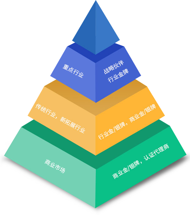 | 金牌渠道商 | 資質(zhì) | 1)提供在當(dāng)?shù)毓ど坦芾聿块T營業(yè)執(zhí)照; 2)稅務(wù)資料(增值稅開票資料); ? ? ?3)渠道協(xié)議; 4)公司簡介(包含主要負責(zé)人及其聯(lián)系方式); ? ?授權(quán)1 個省市內(nèi)2 個行業(yè)的銷售,享受渠道價,賬期 15 天內(nèi)。1 年后可申請鉆石代理資格。 |